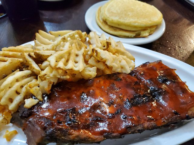 It was dark so I didn't get to see a scenic view but the food was phenomenal. Their ribs fall off of the bone, they're tender, not dry & to die for. Everything I had was great. I will be back & I'll have to try the steak next time. The staff was also extremely nice. Thank you very much to Wagners.