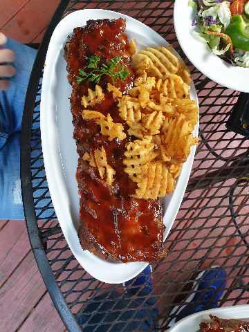 It was dark so I didn't get to see a scenic view but the food was phenomenal. Their ribs fall off of the bone, they're tender, not dry & to die for. Everything I had was great. I will be back & I'll have to try the steak next time. The staff was also extremely nice. Thank you very much to Wagners.